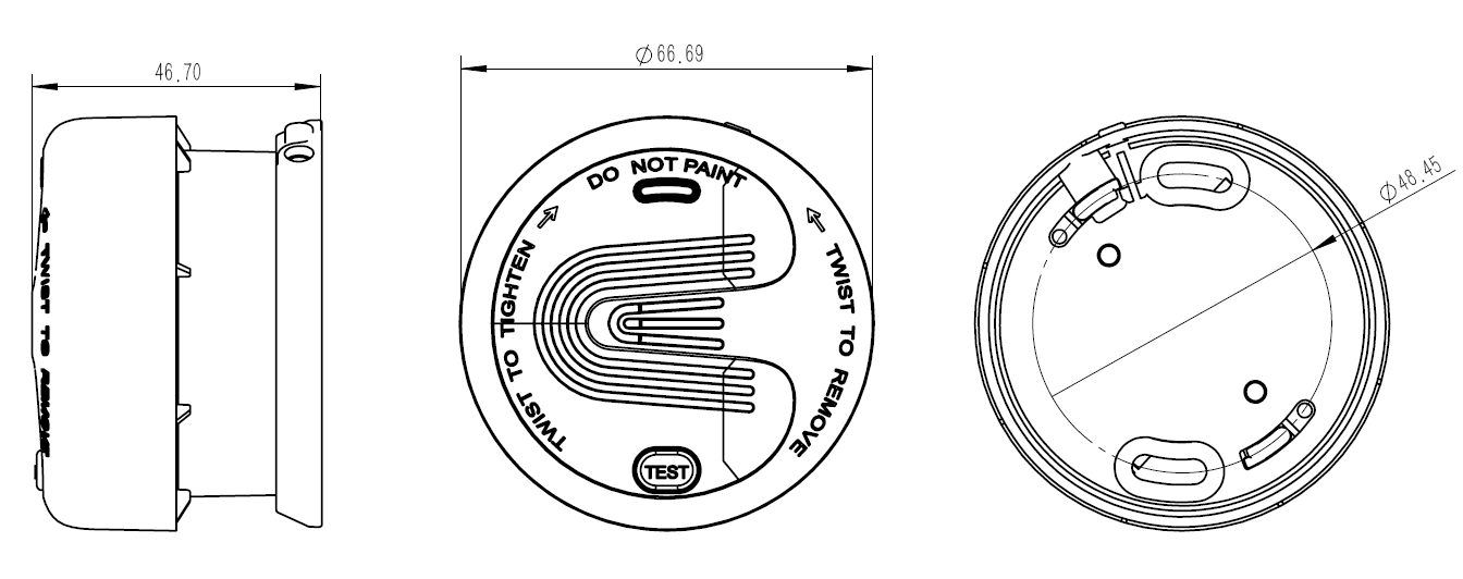 do. Za każdym razem, gdy baterie są wymieniane, przetestuj działanie alarmu, naciskając przycisk Test. Jeśli wykonane są dźwięki, co oznacza, że produkt działa prawidłowo, zainstaluj alarm do płyty montażowej, jak pokazano na rysunku 3.