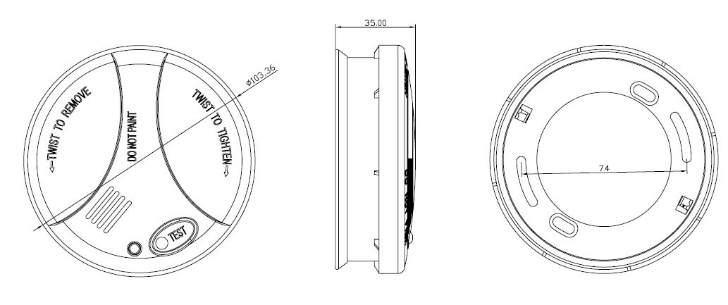 3, Obróć detektor dymu zgodnie z ruchem wskazówek zegara, aby mocno przymocować go do panelu instalacyjnego.